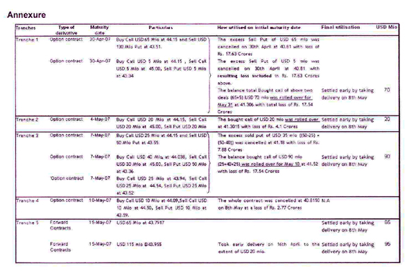 ’07 for USD 380 mn out of the total USD 450 mn exposure. Since