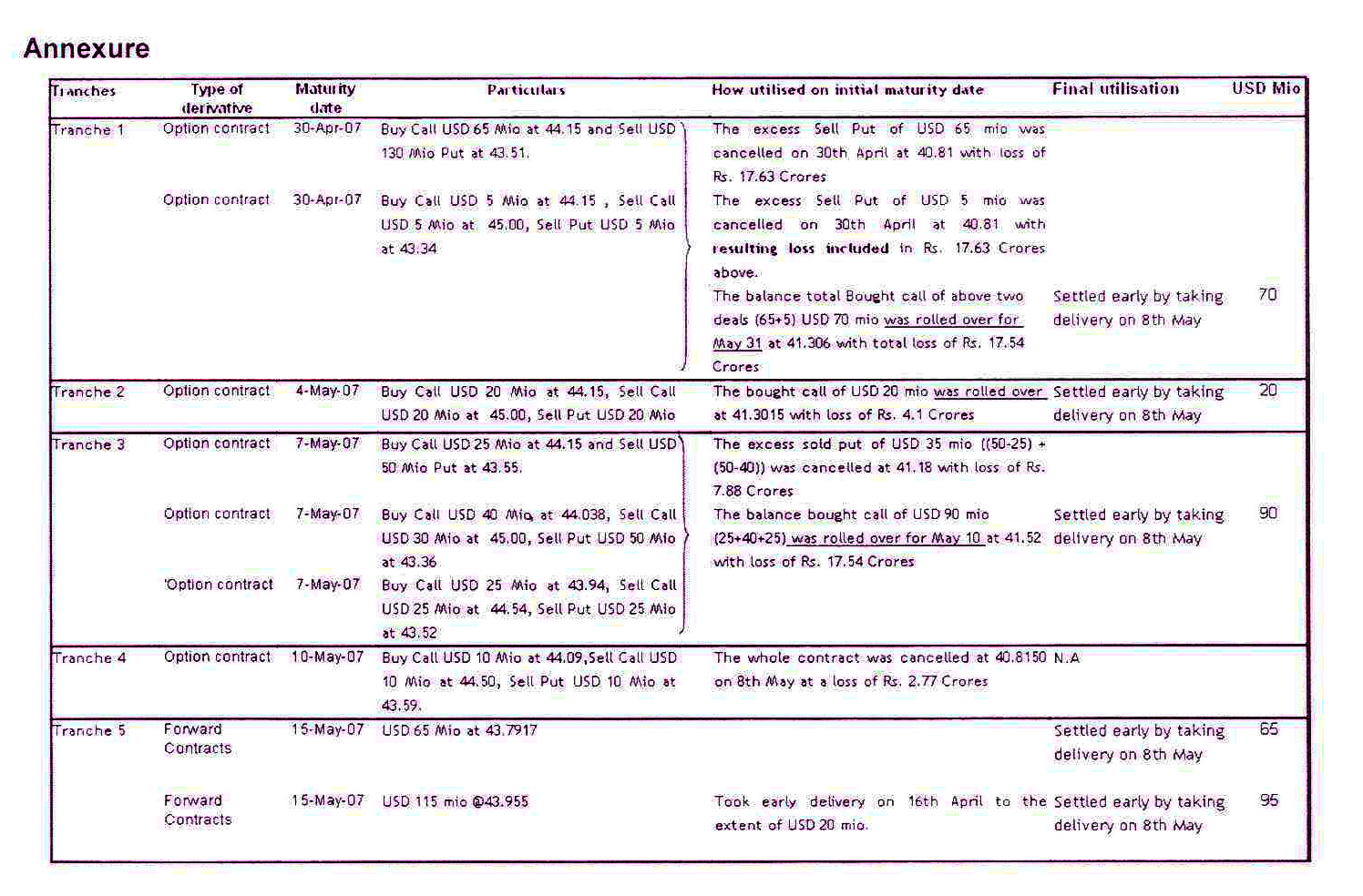 8-May-07 USD 380 mn USD 340 mn was used by taking